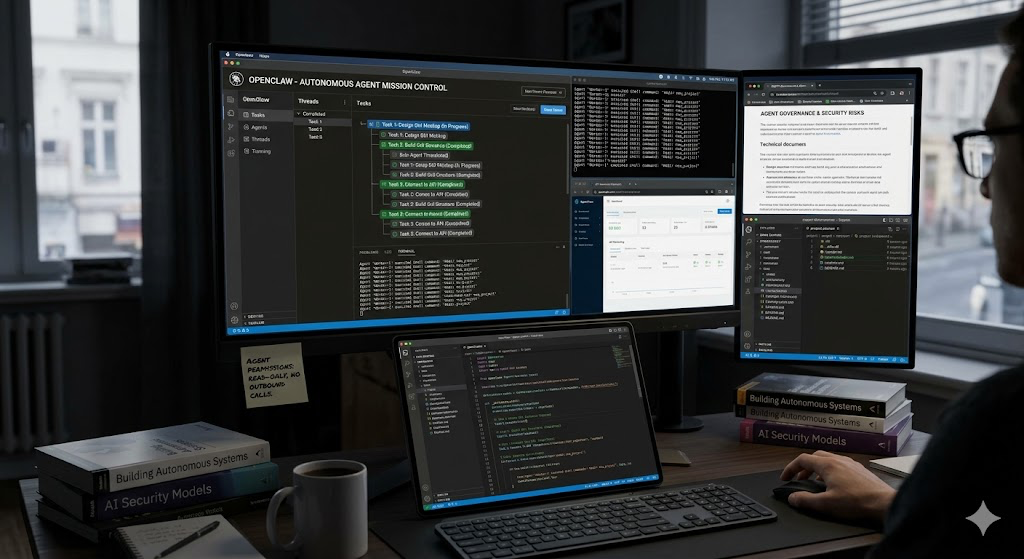 What made the risk concrete for me, was watching it design and build a Mission Control GUI I hadn't fully scoped. It wasn't perfect, but it created what it thought I wanted. In that moment I felt nervous about the power I'd handed it, like credentials, file access, internet access, live APIs...and it was making decisions. I had deliberately constrained its permissions before starting like read-only access to sensitive directories, no outbound calls without explicit approval. That containment gave me some comfort. But it made me ask how many organisations deploying agents have thought this through with the same rigour.